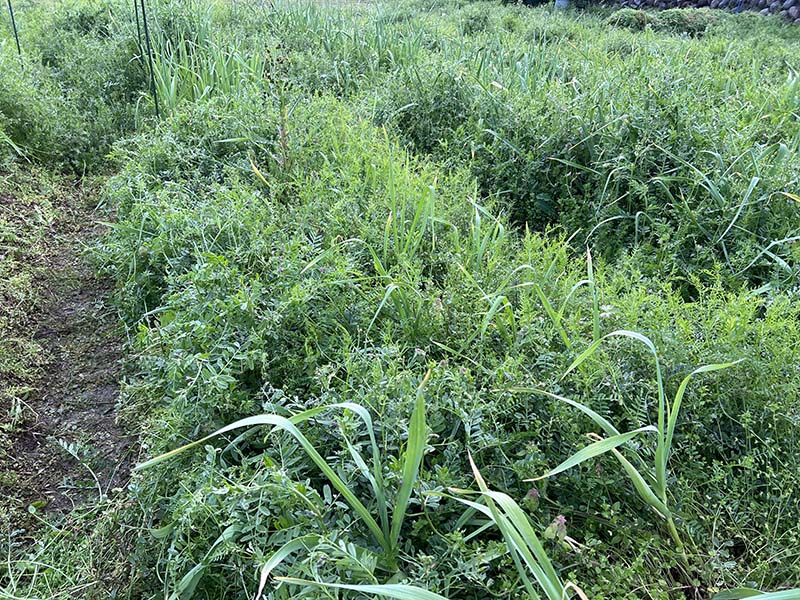 栽培しているニンニク畑が大量の雑草に占領され、もはやニンニクが見えないほどに雑草を放置してしまいました。